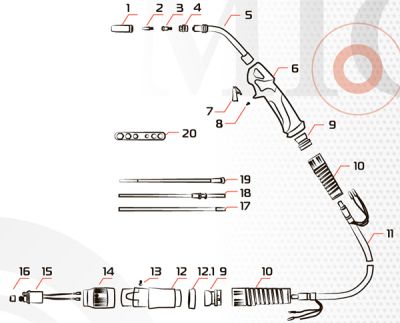 | 20* | 0307.600.000 | MT1000 | Ключ для сборки горелки MIG |