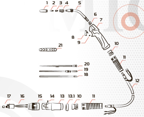 | 21* | 0307.600.000 | MT1000 | Ключ для сборки горелки MIG |