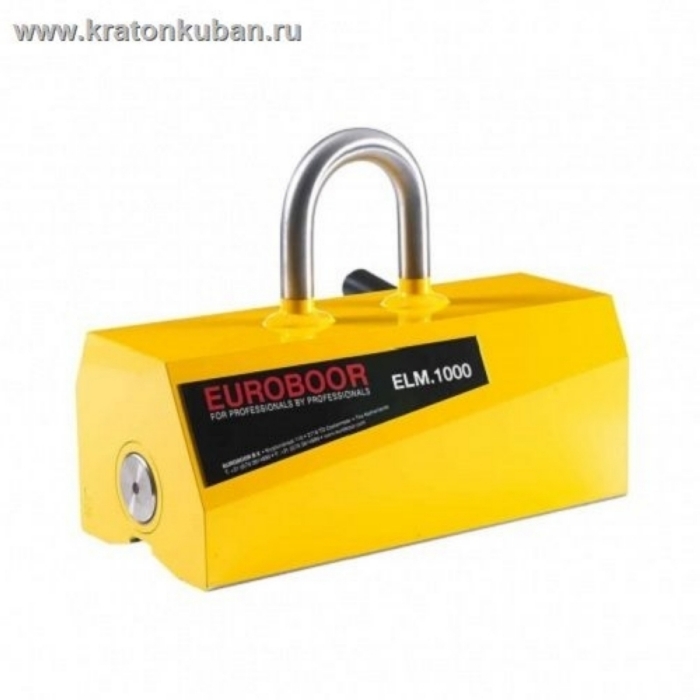 Грузозахват магнитный Euroboor ELM.1000 предназначен для подъема и перемещения плоских заготовок весом до 1000 кг и округлых заготовок весом до 500 кг. Включение и выключение магнитного контура производится путем поворота рычага. Для присоединения грузозахвата к подъемнику в его верхней части имеется серьга. Изготовлен на основе редкоземельных неодимовых магнитов. Электропитание и обслуживание не требуется. Оптимальная температура работы до 80 °C. Вес грузозахвата 42 кг.