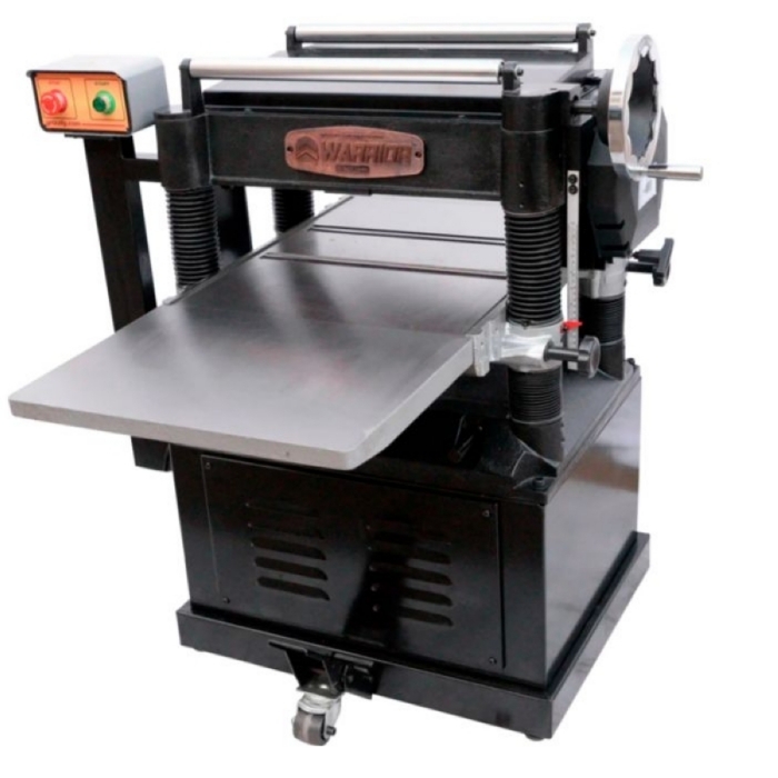 Станок рейсмусовый Warrior W0201 профессиональное оборудование, предназначен для обработки заготовок из древесины в заданный размер по толщине. Линейка фуговальных станков WARRIOR от производственной компании HARVEY изготовляются из высококачественных материалов и соответствуют мировым стандартам качества. Станок WARRIOR W0201 оборудован двигателем мощностью 3,7 кВт с потребляемым напряжением питания 380 вольт. Массивная конструкция станка обеспечивает отличную устойчивость и минимальные вибрации, что существенно влияет на качество обработки. Точно позиционированный рабочий стол, выполненный из чугуна отшлифован и отполирован способствует отличному скольжению заготовки. Цепная передача с автоматическим механизмом натяжения. Для более комфортного возврата заготовки на верхней части станка установлены ролики. Большой маховик осуществляет установку высоты обработки. Плавную и равномерную автоматическую подачу заготовки обеспечивают зубчатый подающий и выходной ролики из полиуретана. Для предотвращения отбрасывание заготовки установлена когтевая защита. Кнопка экстренной остановки удобно расположена для быстрого доступа. Выходное отверстие позволяет подключатся к стружкоотсосу для сбора стружки образующейся во время работы. Надежный станок с понятным управлением подойдет для различных деревообрабатывающих производств.