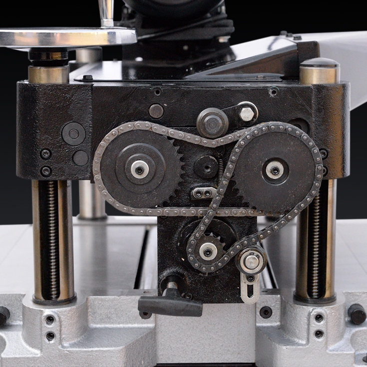 Стол быстро и точно регулируется маховиком через жёсткий редукторный привод