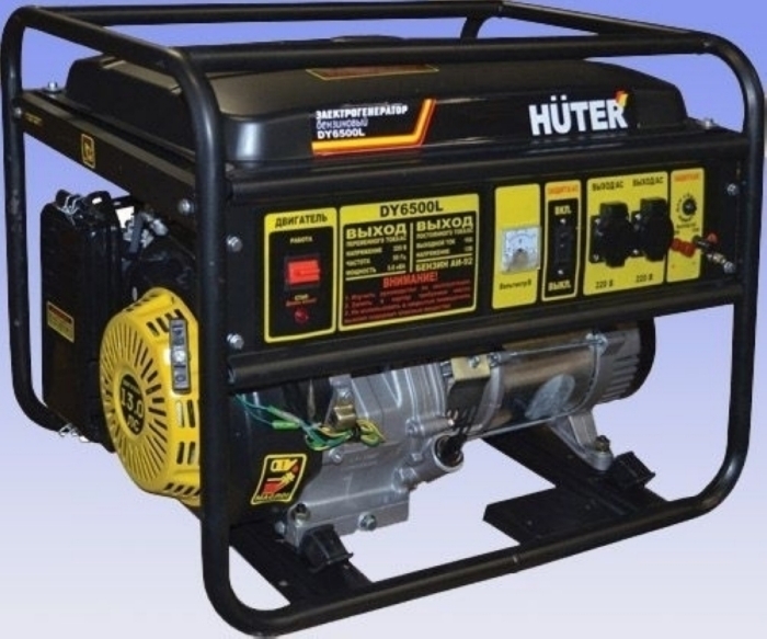 Бензиновая электростанция Huter DY 6500 L - предназначена для энергоснабжения электрических устройств при отсутствии электроэнергии, при суммарной мощности электроприборов равной 5.0 кВт, при напряжении 220 В. Расход бензина при средней нагрузке бензогенератора составит 1.9 л/ч. У данной модели установлен мощный бензиновый двигатель внутреннего сгорания Huter 188F со встроенным датчиком уровня масла, позволяющим предотвратить повреждение механизмов двигателя при отсутствии масла. Конструкция генератора выполнена с максимальной комфортностью, позволяющей перемещать генератор вручную, не прибегая к использованию транспортных приспособлений. У электростанции Huter DY 6500 L установлена выхлопная труба для вывода выхлопного газа, которая способствует к снижению уровня шума до 71 Дб. Электроагрегат снабжен топливным баком емкостью 22.0 л, позволяющим работать бензогенератору 15.5 часов без дозаправки