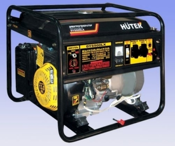 Номинальная мощность, Вт 5000 Частота, Гц 50 Уровень шума, дБ (А) 71 Альтернатор щеточный, синхронный Модель двигателя Huter 182F Тип двигателя бензиновый / газовый (в зависимости от комплектации), четырехтактный, одноцилиндровый Мощность двигателя, кВт 7,8 Топливо неэтилированный бензин марки АИ-92 / пропан, пропан-бутан (в зависимости от комплектации) Запуск элекстростер, ручной стартер Система смазки разбрызгиванием Охлаждение воздушное, принудительное Автоматический ввод резерва опционально Емкость бака,л 22 Расход топлива, г/кВтч 374 Расход масла, г/кВтч 6,8 Габаритные размеры, мм 700х535х570 Вес нетто, кг 89 Бензиновая электростанция Huter DY 6500 LX - предназначена для энергоснабжения электрических устройств при отсутствии электроэнергии, при суммарной мощности электроприборов равной 5.0 кВт, при напряжении 220 В. Расход бензина при средней нагрузке бензогенератора составит 1.9 л/ч. У данной модели установлен мощный бензиновый двигатель внутреннего сгорания Huter 188F со встроенным датчиком уровня масла, позволяющим предотвратить повреждение механизмов двигателя при отсутствии масла. Конструкция генератора выполнена с максимальной комфортностью, позволяющей перемещать генератор вручную, не прибегая к использованию транспортных приспособлений. У электростанции Huter DY 6500 LX установлена выхлопная труба для вывода выхлопного газа, которая способствует к снижению уровня шума до 71 Дб. Электроагрегат снабжен топливным баком емкостью 22.0 л, позволяющим работать бензогенератору 15.5 часов без дозаправки.