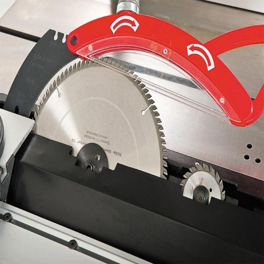 В остальном конструкция и функциональное оснащение станка полностью соответствуют принятым стандартам класса: предусмотрен подрезной диск с приводом от основного двигателя, есть регулировка наклона и высоты установки пильного модуля. Возможно подключение к системе удаления опилок с отсосом как из нижней полости, так и от верхнего кожуха диска.