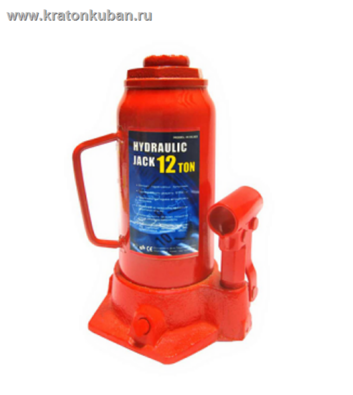 Домкрат гидравлический бутылочного типа 12т, высота 230 мм, ход штока 155 мм, регулируемая по высоте винтовая площадка до 80 мм, ручка для переноски, вес 7,2 кг.