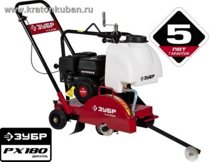 Швонарезчик бензиновый ЗУБР ЗШБ-350 -предназначен для нарезания швов в дорожном строительстве, вырезании проемов в перекрытиях, для строительства и реконструкции зданий. Оснащен надежным двигателем Зубр PX 180 . Прочная рама гарантирует надежную защиту от деформации. Удобный рычаг регулировки глубины реза. Навесной бак для воды обеспечит оптимальный поток воды к диску