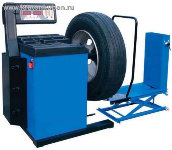 Универсальный балансировочный станок с пневматическим подъемным устройством для балансировки колес весом до 130 кг, предназначен для обслуживания грузового и легкового транспорта.