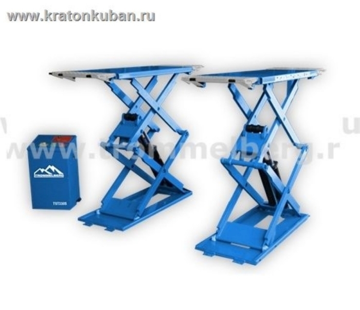 Компактный электрогидравлический подъемник наземной установки с двойными ножницами и гладкими платформами с гидравлической синхронизацией.