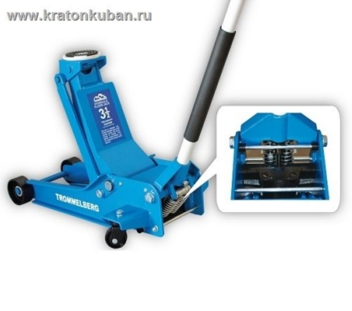 Подкатной гидравлический домкрат с ручной накачкой.