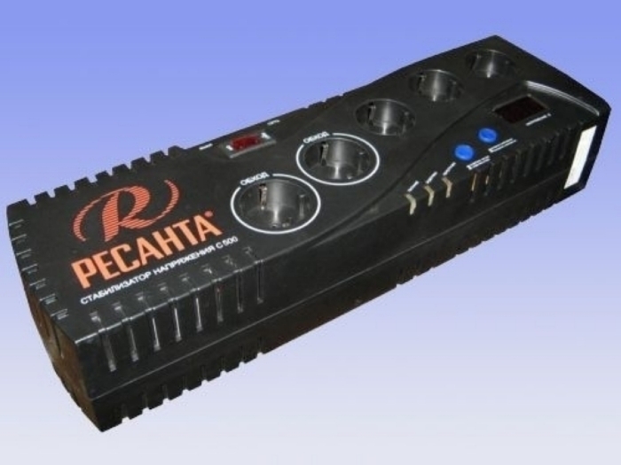 Стабилизатор Ресанта С500 защищен от перегрузки и короткого замыкания. При выходе напряжения в сети за пределы допустимого срабатывает соответствующая система защиты, автоматически отключающая нагрузку. После возвращения входного напряжения в рабочий диапазон подключение нагрузки осуществляется также в автоматическом режиме.