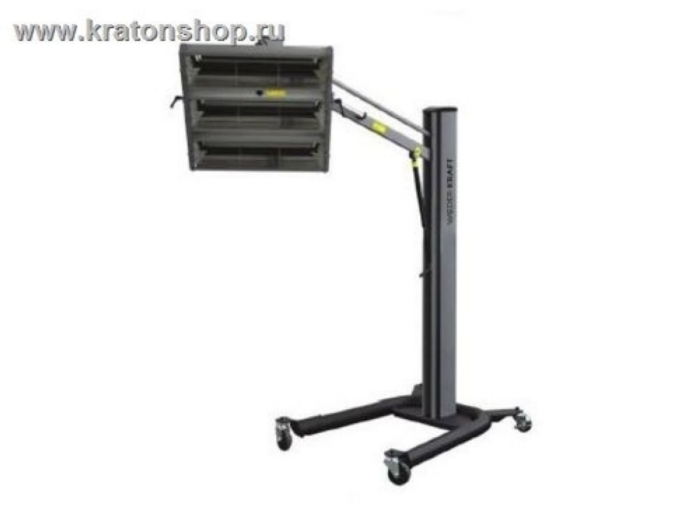 Мобильная трехкассетная ИК сушка WDK-3CH – профессиональное мобильное устройство для сушки лакокрасочных покрытий ИК излучением. Блок, объединяющий три кассеты, с коротковолновыми ИК лампами размещен на пантографической стойке. Кассетный блок легко поднимается на высоту 2300мм. Стойка прибора оборудована газовым амортизатором, для поддержки и изменения положения кассетного блока. Регулировка положения блока кассет осуществляется крепёжными винтами с удобной ручкой. "П" - образная опорная платформа имеет 4 колёсика (2 из которых оснащены стопором), что обеспечивает устойчивость и позволяет располагать сушку в любом необходимом месте, для работы с кузовом автомобиля. Панель управления проста и понятна в настройках и обеспечивает возможность регулирования мощности и времени нагрева. Модель оснащена ультразвуковым датчиком контроля расстояния.