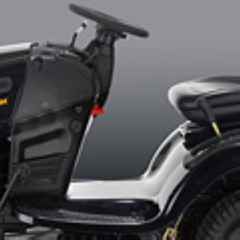 Вместительный травосборник, входящий в комплект, превосходно собирает и скошенную траву, и листья. Легко опустошается прямо с места водителя.