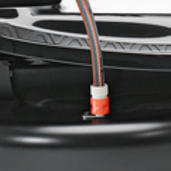 Универсальный штуцер для подключения водяного шланга позволяет легко очистить режущую деку после кошения. Подсоедините шланг, включите подачу воды и запустите двигатель. Для наилучшего результата мойте режущую деку сразу после кошения травы.
