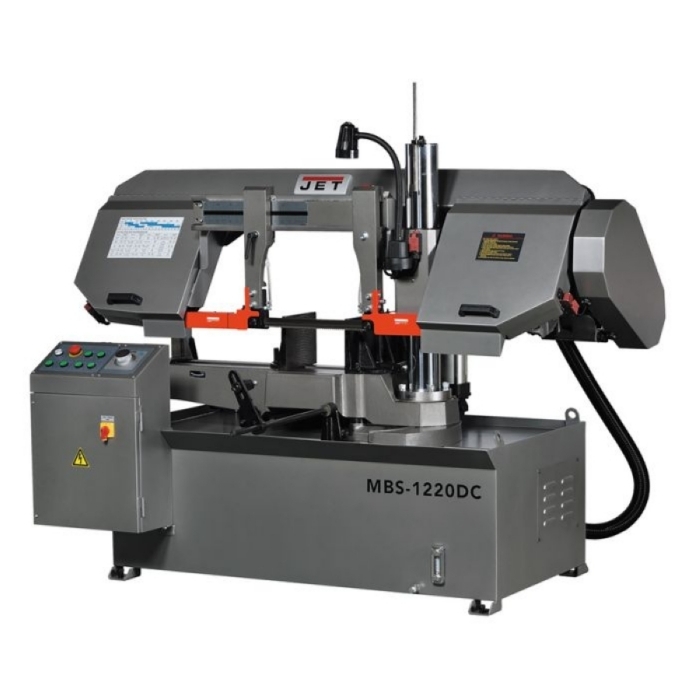 Колонный ленточнопильный станок Jet MBS-1220DC - представляет собой модельный ряд ленточнопильных станков колонного типа, в которых вертикальное движение консоли осуществляется вдоль колон. Наличие двух стоек позволяет вести длительную обработку на повышенных режимах подачи консоли. Станок имеет поворотную пильную раму, позволяющую осуществлять обработку заготовок диаметром 300 мм под прямым углом и 255 мм при левом повороте рамы под углом 45 0. Оборудование используется для промышленных серийных работ, способно выполнять обработку металлических круглых заготовок большого диаметра, заготовок прямоугольного сечения. Станок имеет гидравлическую систему, обеспечивающей движение консоли по вертикали, позволяющей использовать в конструкции гидравлические тиски мощного прижимного действия. Технологические возможности станка позволяют выполнять полный цикл обработки заготовок в полуавтоматическом режиме.