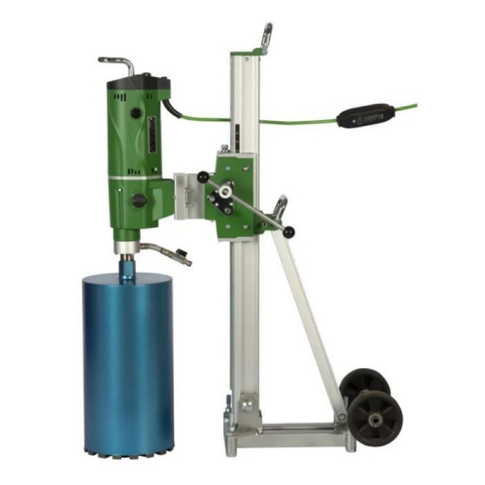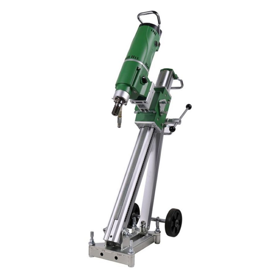 Комплект алмазного бурения Bycon PRO-250 (DMP-350+DSP-252) - установка алмазного бурения промышленного класса для сверления со станины отверстий среднего и большого диаметра до 250 мм. Станина с колесами и упор-откосом. Есть индикатор нагрузки мотора. Сверление можно проводить под углом до 45 градусов.