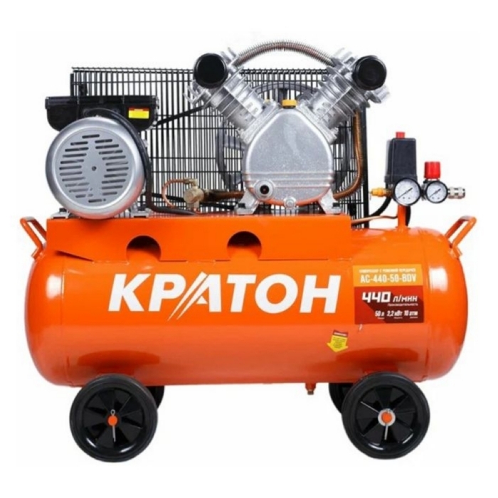 Компрессор с ременной передачей Кратон AC-440-50-BDV - это малошумный, отличающийся высокими характеристиками и производительностью аппарат, предназначенный для интенсивной эксплуатации и работы в сложных условиях. Оснащен мощным электрическим двигателем с системой защиты от перегрева, 2-мя манометрами для регулировки давления, индикатором уровня масла. Благодаря ременному приводу существенно увеличивается ресурс работы компрессора. Также следует отметить, что у данного устройства имеются: транспортировочные колеса и рукоятка для удобного перемещения и защита ременного привода.