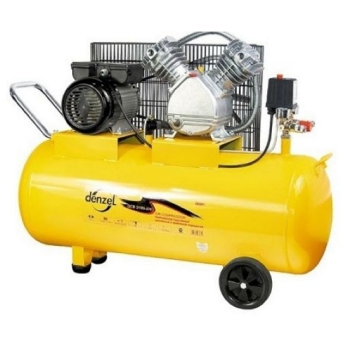 Компрессор с ременной передачей DENZEL PC 2/100-370 - предназначен для обеспечения сжатым воздухом различной промышленной аппаратуры и оборудования, применяемых на станциях технического обслуживания автомобилей и при распылении красителей. Ежедневное использование компрессора позволяет снизить расход электроэнергии и увеличить эффективность работы. Для увеличения продолжительности работы предусмотрена система принудительного охлаждения. Производительность компрессора с ресивером объемом 100 л достигает 370 литров в минуту при степени сжатия воздуха равном 8 атм. При понижении давления ниже 6 атм происходит автозапуск двигателя. Питание компрессор получает от стандартной розетки 220 В. Кроме того, модель оснащена парой колес и специальной ручкой для удобной транспортировки компрессора.