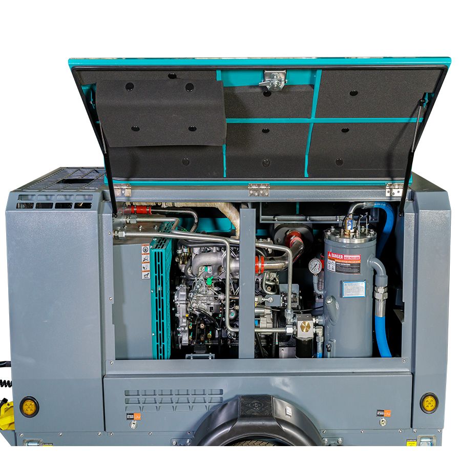 Установка работает от дизельного двигателя Isuzu JX493G3, который напрямую сопряжен с роторной группой. Это позволяет передавать вращающий момент винтовому блоку практически без потерь мощности.