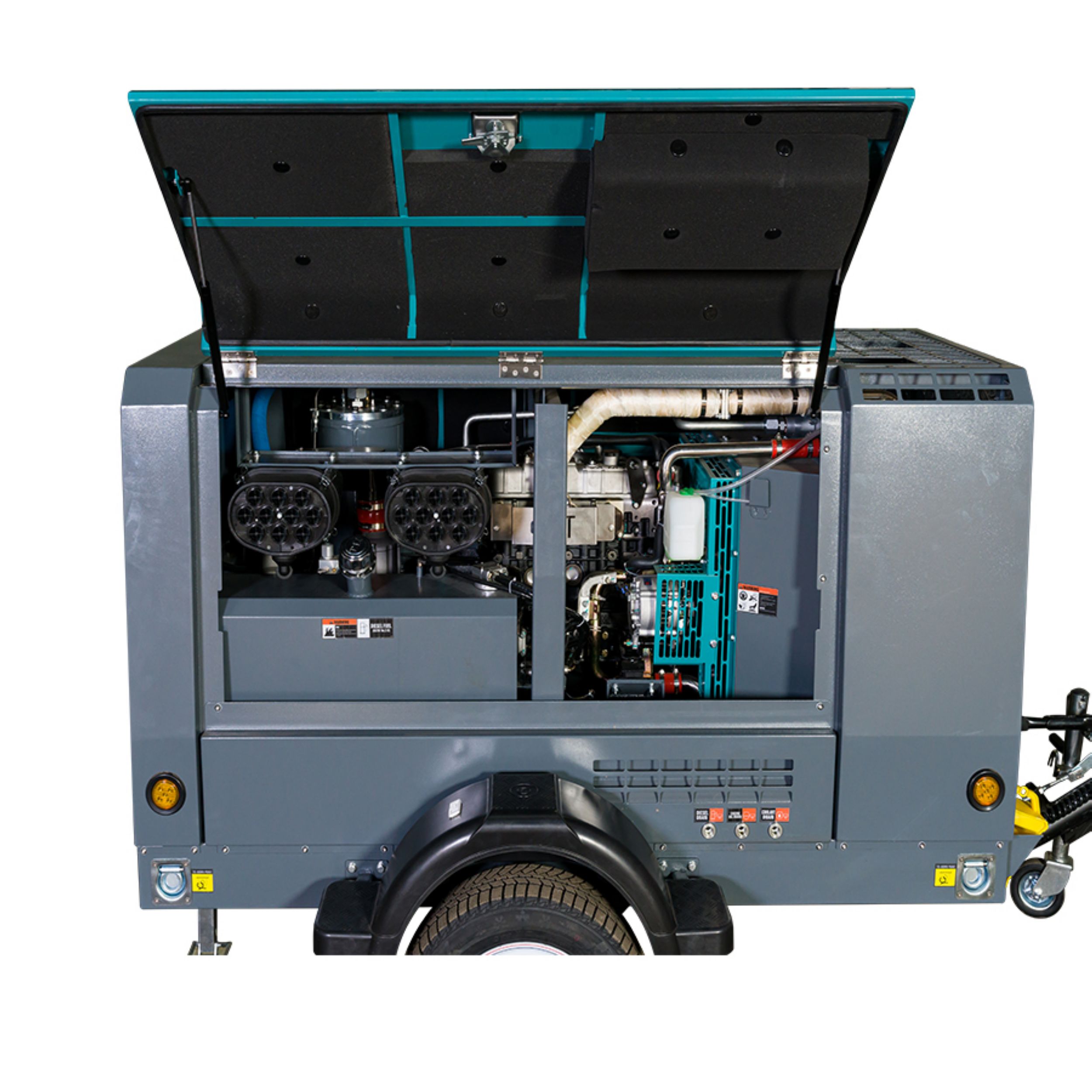 Установка работает от дизельного двигателя Isuzu JX493G3, который напрямую сопряжен с роторной группой. Это позволяет передавать вращающий момент винтовому блоку практически без потерь мощности.