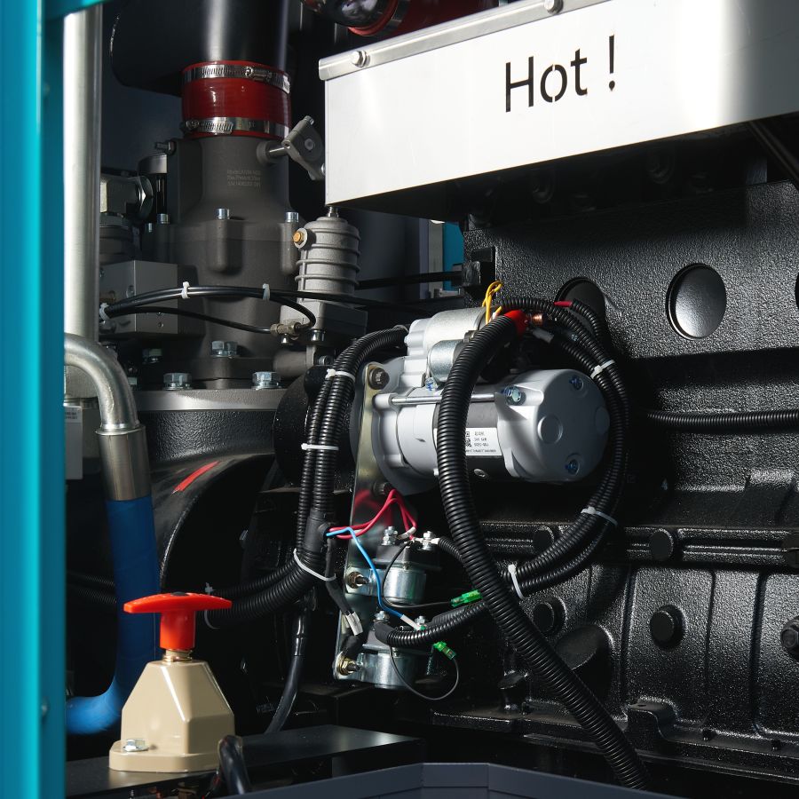 При обслуживании и ремонте компрессора Master Blast удобно пользоваться централизованными сливами всех технических жидкостей. Сливы оборудованы запорными кранами. Внутренне пространство дизельного компрессора спроектировано таким образом, что имеется удобный доступ ко всем точкам обслуживания. Так же защитные кожухи на выхлопной системе, на системе охлаждения дополнительно защитят оператора или сервисного инженера от возможных травм.