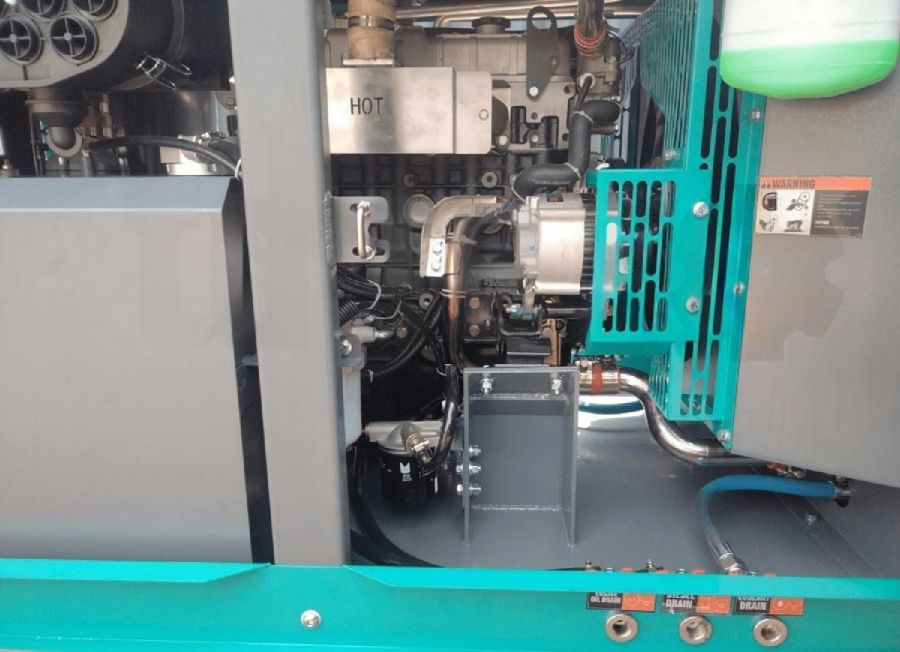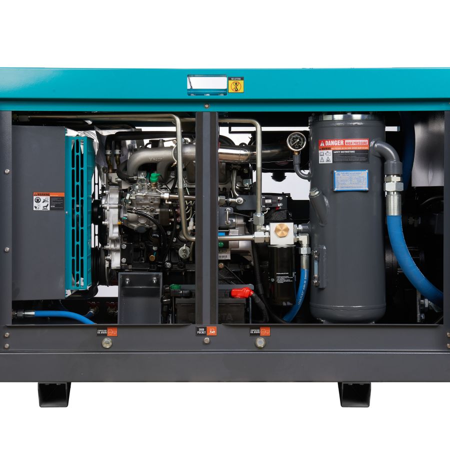 Компрессор оснащён дизельным двигателем, который обеспечивает его работу. Благодаря использованию винтового блока достигается высокая эффективность и надёжность работы оборудования. Компрессор имеет компактные размеры и низкий уровень шума, что позволяет устанавливать его в непосредственной близости от рабочих мест.