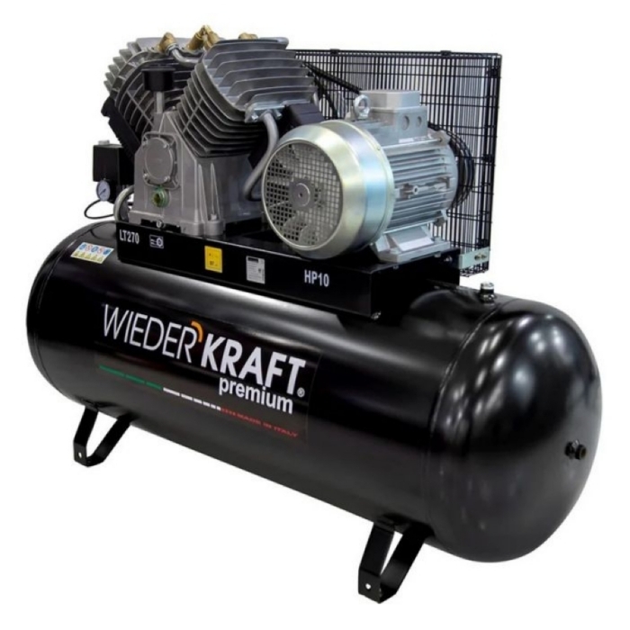 Компрессор с ременной передачей Wieder Kraft WDK-92712 - используется в случаях, когда требуется подача большого объема воздуха на длительное время, например в процессе покрасочных работ. Также подойдет для использования в авторемонтных участках с большим потреблением воздуха.