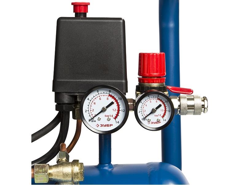 Компрессор оборудован манометром для контроля давления в ресивере |