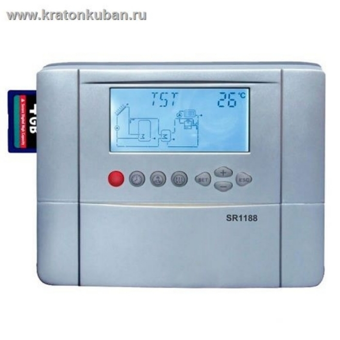 Контроллер управления солнечного коллектора SR1188 - является обязательным элементом гелиосистем с принудительной циркуляцией теплоносителя. Он предназначен для управления процессом нагрева от солнца и контроля состояния гелиосистемы. Контроллер получает информацию от датчиков температуры (один из которых устанавливается на выходе солнечного коллектора) и регулирует работу циркуляционного насоса. Эффективность и безопасность гелиосистемы в значительной мере зависят от контроллера.