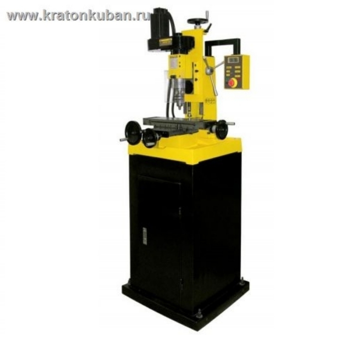 Корвет - 416 - станок может выполнять такие функции как сверление, фрезерование, проточка, зенковка, а также снятие фасок. Станок оснащен экономичным коллекторным двигателем, который потребляет 1000 Вт. Несмотря на относительно большую мощность двигателя станок может использоваться с электрогенераторами, где нет постоянного обеспечения электроснабжением, в гараже или на даче. Двигатель оснащен плавким предохранителем,который предотвращает от перегрузки, а так же сигнальнальной лампочкой, указывающей на необходимость отключения двигателя. Так же на станке установлен магнитный пускатель, который исключает включение двигателя, станок оснащен плавной регулировкой частоты вращения двигателя в двух диапазонах, имеет реверс работы двигателя, при необходимости имеется выбор быстрого или точного перемещения шпинделя и его наклона, контролируемого по шкале, имеется вертикальный ход шпиндельной бабки. Рабочий стол для удобства в работе двигается в двух плоскостях, в связи с чем можно осуществлять фигурные проточки с необходимой точностью. Установленная рукоятка на шкиве станка значительно облегчает и обеспечивает быстрый подъем и опускание фрезерного узла. В стандартную комплектацию станка входят: рукоятка, круг шлифовальный на оправке, щиток защитный, гайка квадратная, шпилька крепёжная, ключ шестигранный, оправка, ключ рожковый, ключ (гайки шкива), отвёртка, кожух шлифовальный, патрон сверлильный, ключ для сверлильного патрона, ключ замка, маслёнка, маховик, консоль, ручка, рым-болт, щиток съёмны