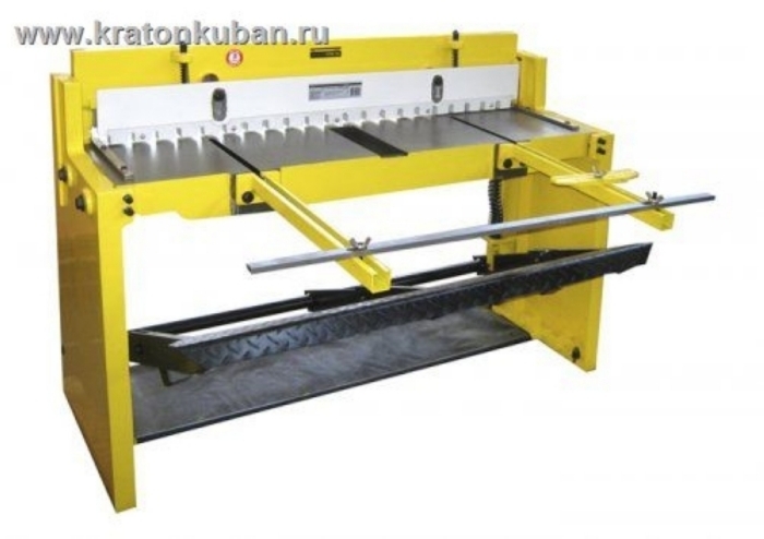 Ножницы гильотинные Корвет-553 - точная резка листового металла толщиной до 1,5 мм, верхний нож имеет 2 режущие кромки, жесткая устойчивая конструкция, дополнительные удлинители для листа спереди и сзади