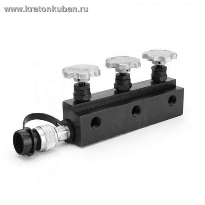 Кран распределительный КРГ-700-3 (1 вход, 3 выхода) позволяет подключать от одного источника 2 единицы гидроинструмента.