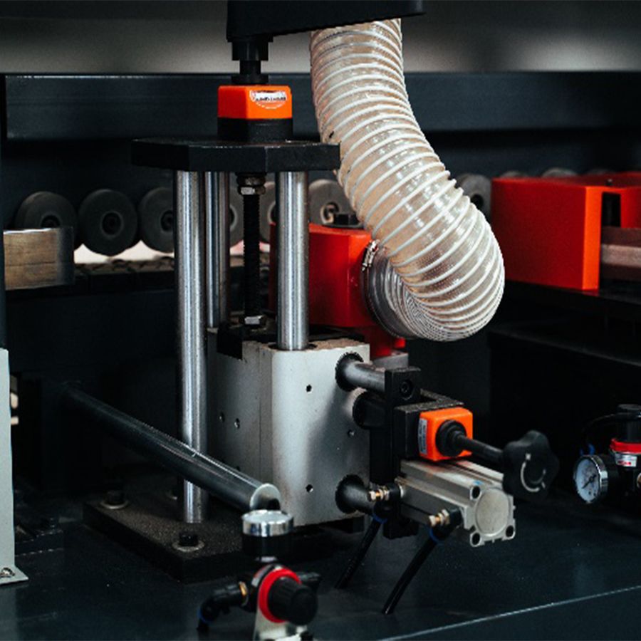 - Траверса имеет ручную настройку толщины детали с цифровым индикаторов в зоне подачи заготовок.