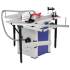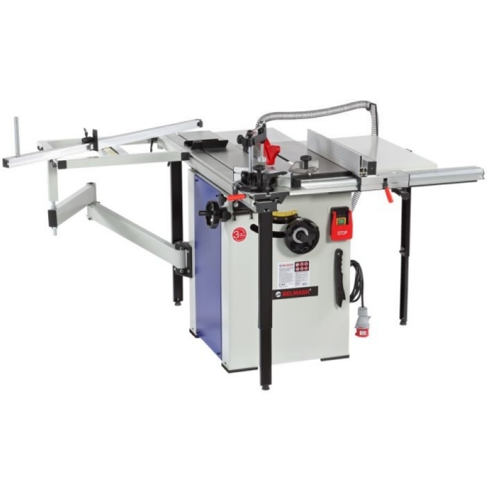 Станок оснащен основным чугунным столом, двумя дополнительными секциями из листовой стали, подвижным столом из алюминиевого профиля и столом поперечного реза из стального профиля. Основной и подвижный столы имеют по одному пазу для установки угловых упоров или дополнительных приспособлений.