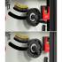 На корпус выведены основные элементы управления станком: маховики регулировки подъема/опускания пильного диска и регулировки угла наклона пильного диска, выключатель, рукоятка блокировки каретки. Кроме того, на нем размещены кронштейн для толкателя и патрубок для отведения отходов резания. Параллельный упор фиксируется на передней направляющей с помощью эксцентрикового зажима.