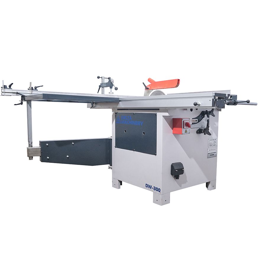 Круглопильный станок DELTAMACHINERY DW-300 - предназначен для продольной, поперечной распиловки и распиловки под углом досок, брусков, мебельных щитов и прочих пиломатериалов. Оснащен литым чугунным столом, подвижной кареткой и механизмом наклона пильного узла под углом 0-45 градусов.