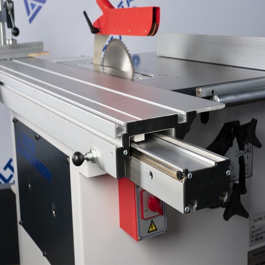 Подъем/опускание пилы регулируется маховиком. Пила наклоняется +/-45 градусов под углом. Удобство настройки по шкале с угловой индикацией.