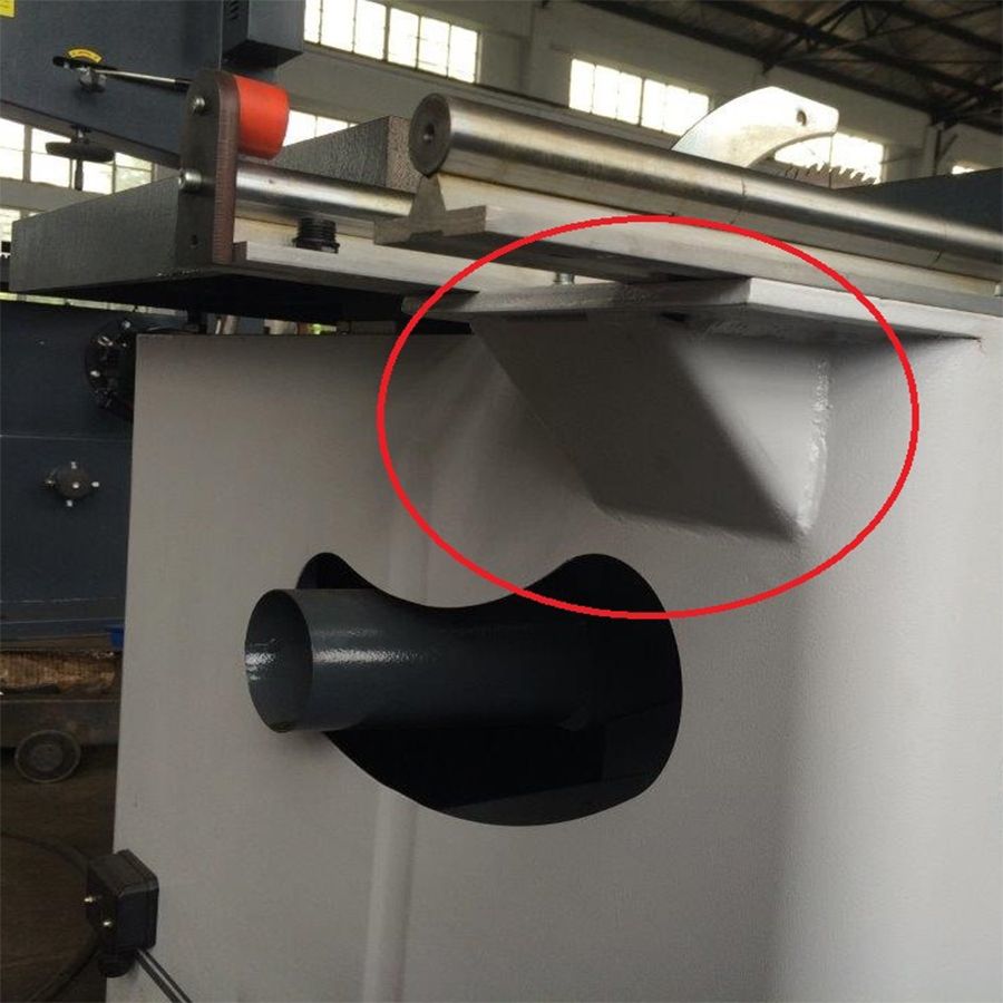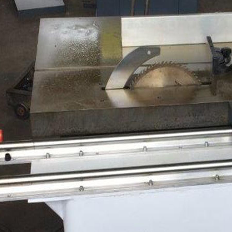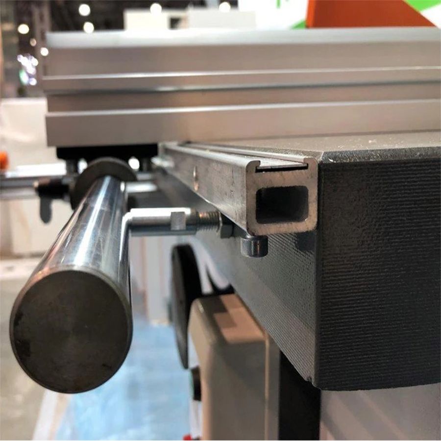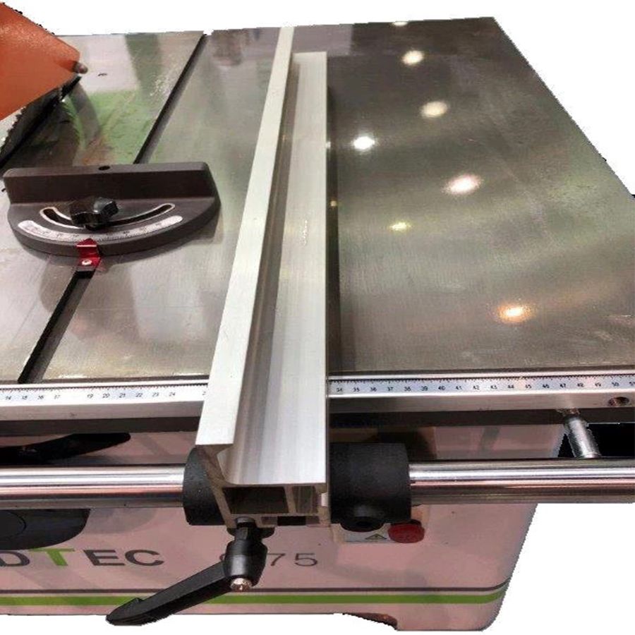Направляющая линейка на каретке для позиционирования и торцовки длинномерного материала с миллиметровой шкалой и флашковым упором. Для торцовки под углом, направляющая линейка имеет возможность поворота.