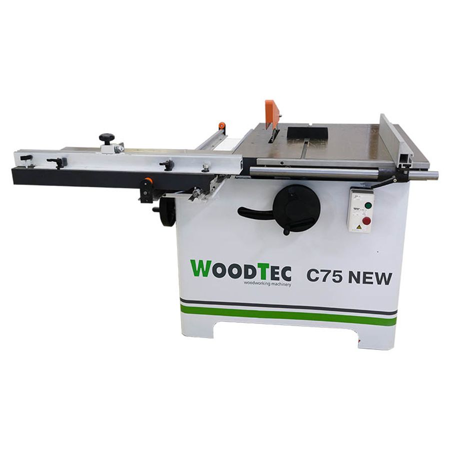 Круглопильный станок с торцовочной кареткой WoodTec C 75 NEW - предназначен для продольной, поперечной распиловки и распиловки под углом досок, брусков, мебельных щитов и прочих пиломатериалов. Оснащен литым чугунным столом, подвижной кареткой и механизмом наклона пильного узла под углом 0 - 45°.