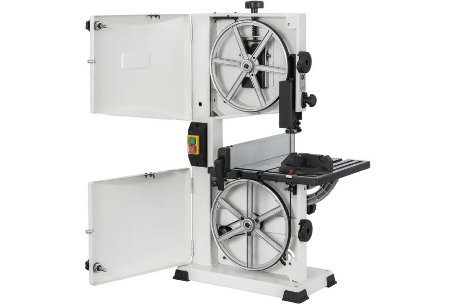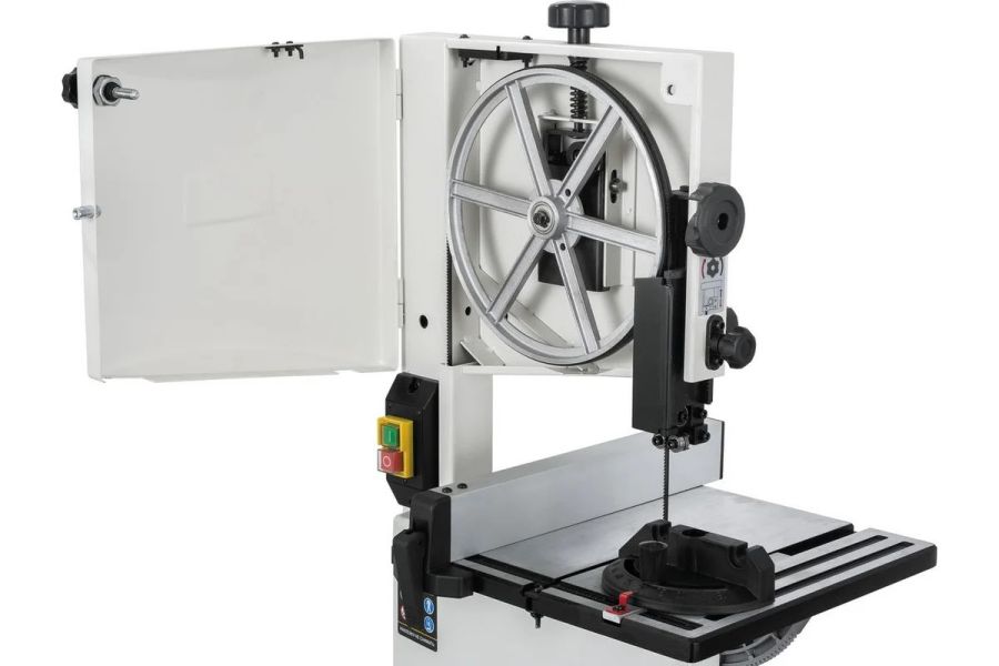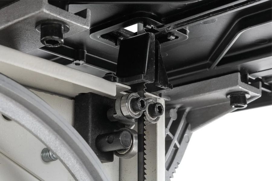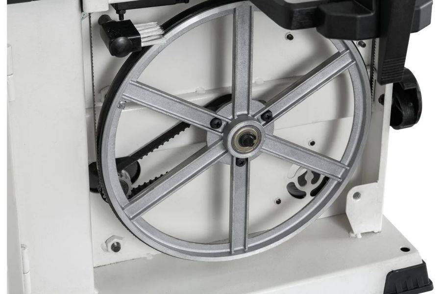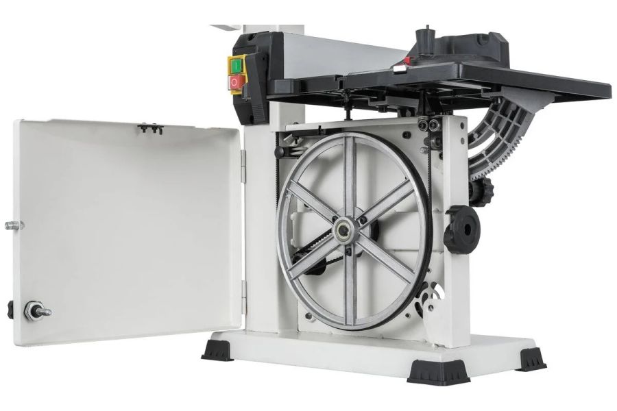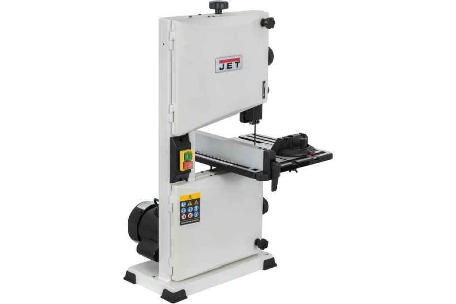 Ленточная пила Jet JWBS-9S – настольный ленточнопильный станок для частного любительского применения. Позволяет распускать заготовки толщиной до 90 и шириной до 225 мм. Укомплектован трехроликовыми направляющими с шарикоподшипниками, обеспечивающими легкое движение ленты, минимальный износ и простоту регулировки. Ведущий шкив приводится во вращение через зубчато-ременную передачу, а не установлен непосредственно на валу двигателя, как часто делают для упрощения конструкции. Такая разнесенная схема дает более плавное без биений вращение и лучшую ремонтопригодность.