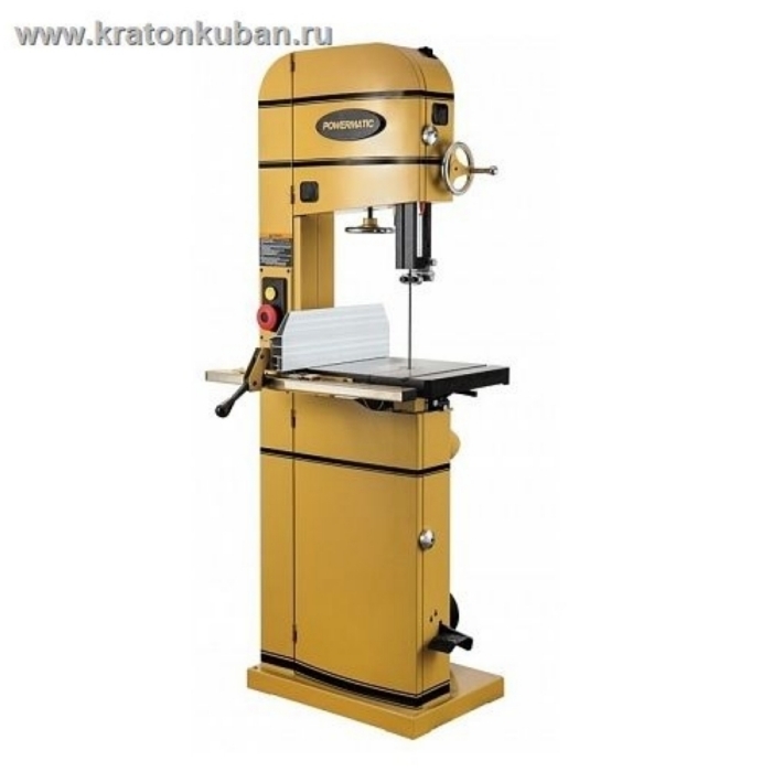 В основе станка жесткая стальная рама, на которой установлены чугунные шкивы с полиуретановым покрытием и чугунный стол с кронштейном из этого же материала. Для натяжения ленты предусмотрен рычаг, имеющий следующие позиции: «работа»/ «хранение»/ «замена». Фиксация полотна производится трехточечными роликовыми направляющими с шарикоподшипниками. Верхние направляющие установлены на подвижной рейке с зубчатым механизмом подъема и опускания, приводимым от массивного хромированного маховика с рукояткой.