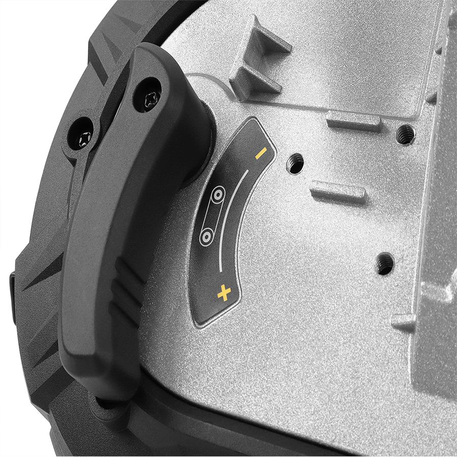 - Пила оснащена регулятором скорости движения ленты, что позволяет подобрать нужную скорость ленточного полотна для разных материалов.