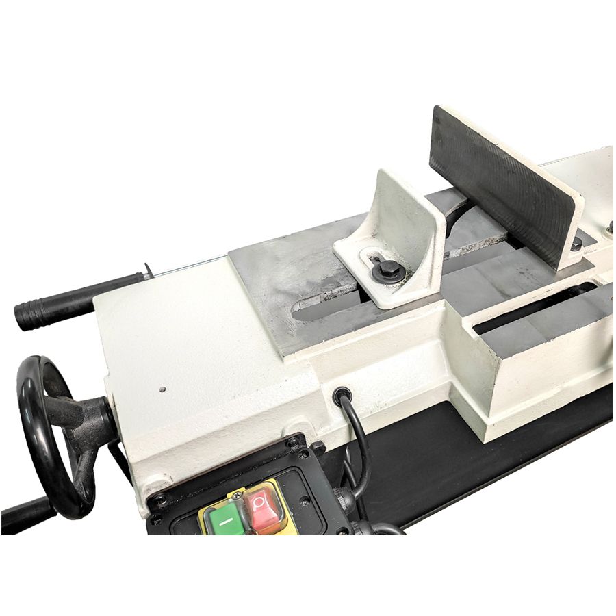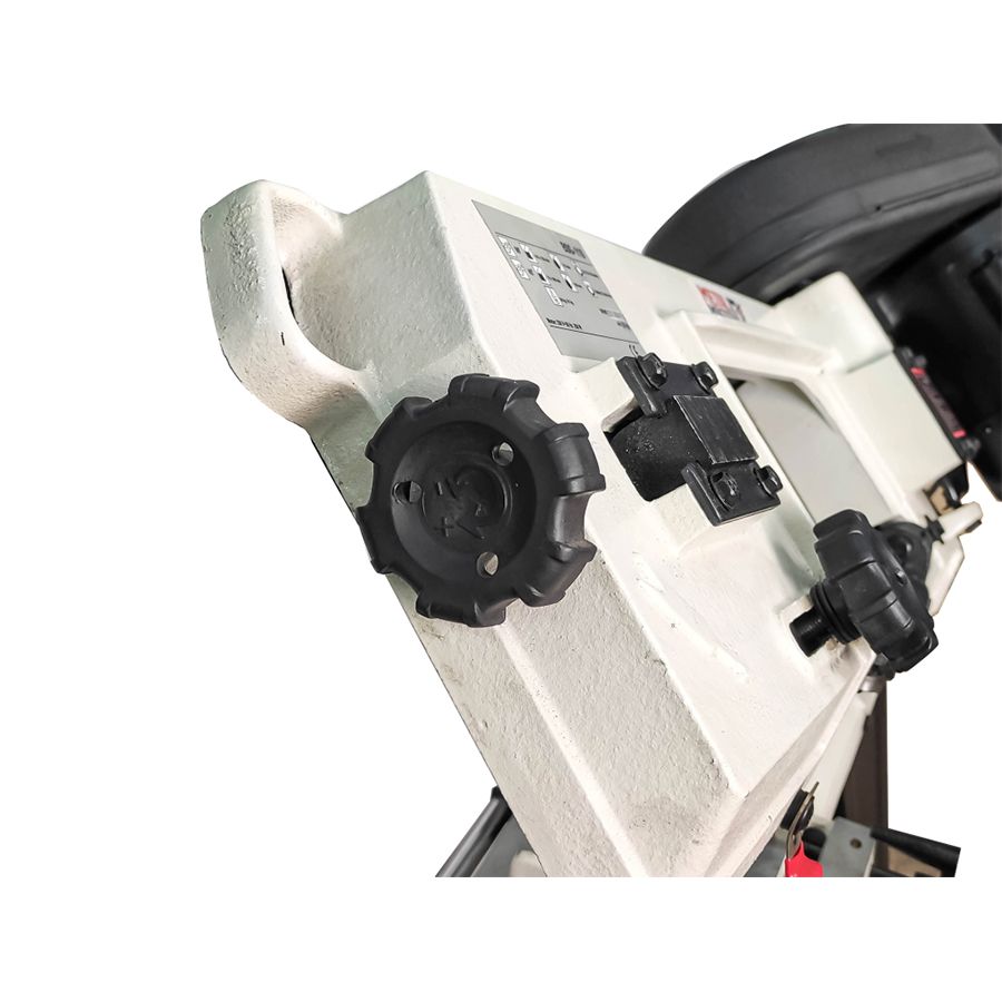 - Для получения наклонных разрезов используются быстрозажимные тиски (поворот на угол до 45 град.), которые обеспечивают надежную фиксацию заготовки; Специальные колеса позволяют с легкостью перемещать ленточную пилу по производственному участку;