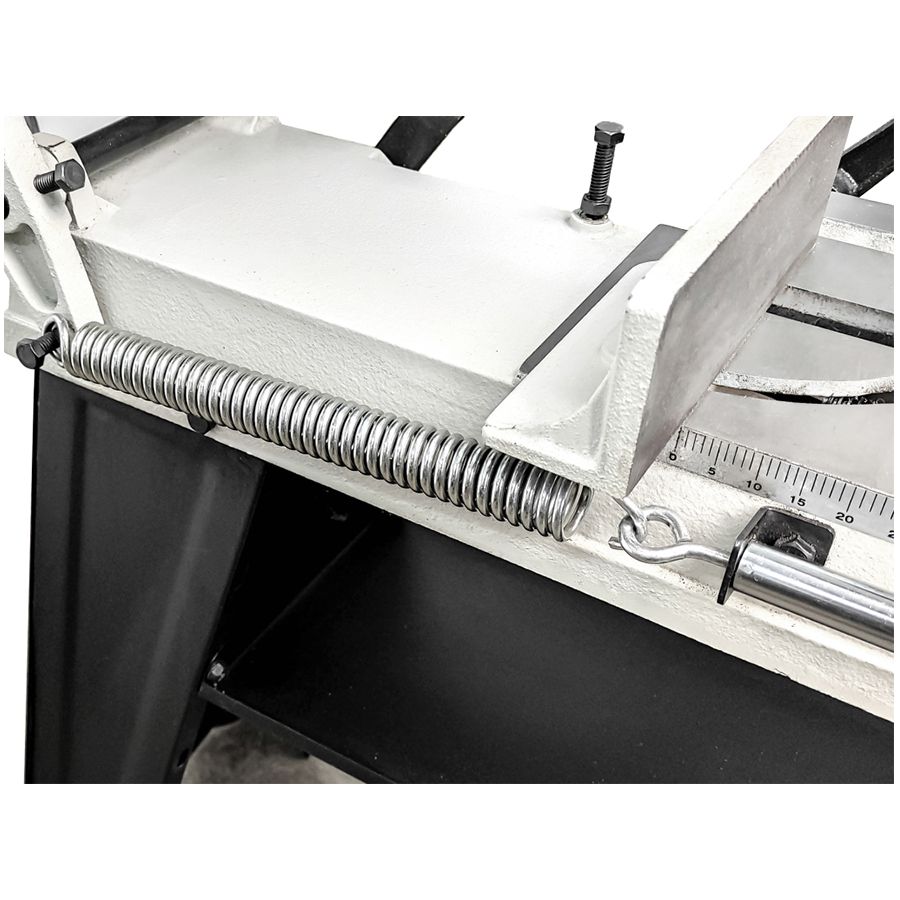 - Рабочий стол и пильная рама отлиты из чугуна, что обеспечивает необходимую жесткость конструкции, а также позволяет гасить часть вибраций, которые возникают в процессе работы ленточной пилы;