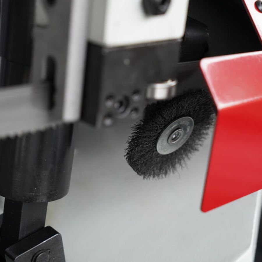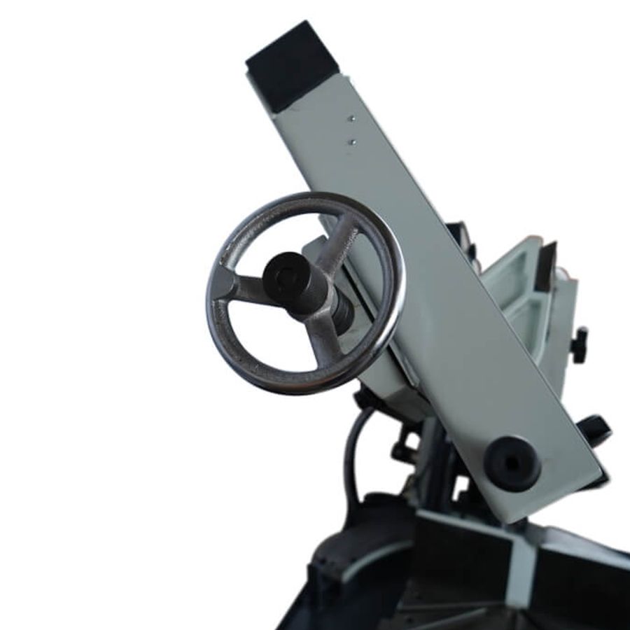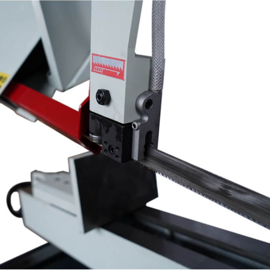 - В рабочей зоне резания полотно точно ведется двумя направляющими головками. Станок имеет поворот губок тисков, для пиления под углом необходимо изменять угол установки тисков. Высота полотна 27мм позволяет пилить c высокой точностью и параллельностью полые и профильные заготовки под различными углами, в том числе и сплошные заготовки. Расстояние от пола до тисков составляет 580 мм.