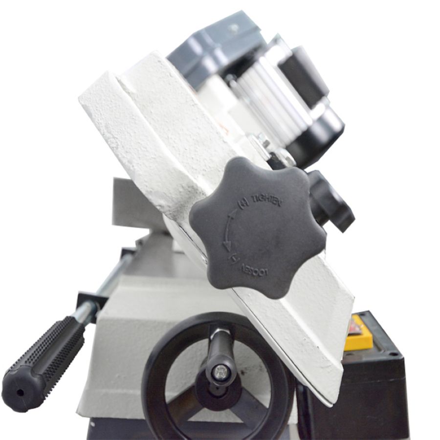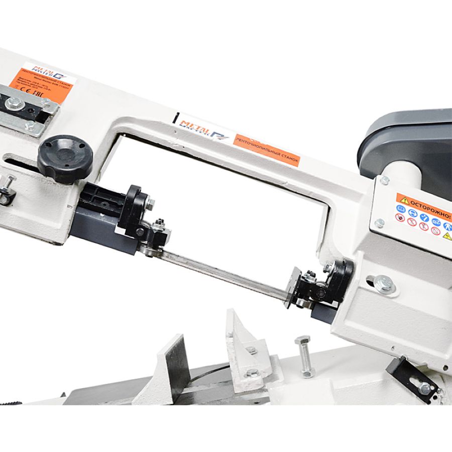 Metal Master BSM-115DIY – устройство относится к модельному ряду ленточнопильных станков ручного типа, так как они малогабаритные и подходят для использования как в домашних условиях (гаражах), так и в небольших помещениях, оборудованных под мастерские. В основном их используют для распила различных металлических деталей из черных, цветных металлов, а также полых и профильных элементов. В нашем случаи у вас будет широкие возможности использования этого оборудования как в горизонтальном положение, так и в вертикальном. Конструктивные особенности это позволяют делать. Станок реализует возможность высокое качество реза, что сводит к минимуму количество стружки и прочих отходов производства. Наличие трех скоростей движения ленточного полотна дает широкие возможности регулировки движения пилы 23, 33, 56 м/мин. Таким образом, вы подбираете настройку агрегата на максимально эффективную работу с различными по плотности и форме материалами. Входящие в комплект станка поворотные тиски, существенно расширяют возможности резки заготовки под различными углами 45 и 90 градусов. Производитель этой модели сделал все необходимое для устойчивости к вибрации и большим нагрузкам ленточнопильного основания, что в свою очередь гарантирует точность выполнения операций и долгий срок службы.