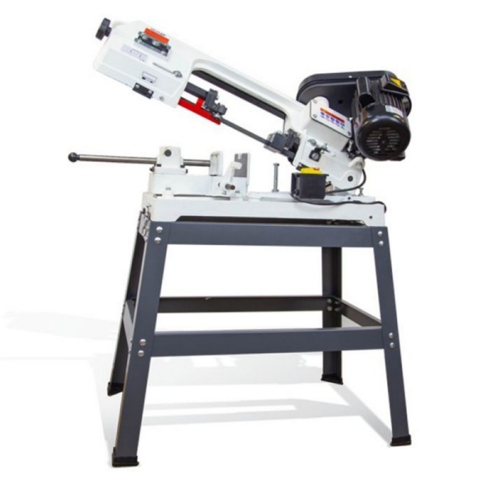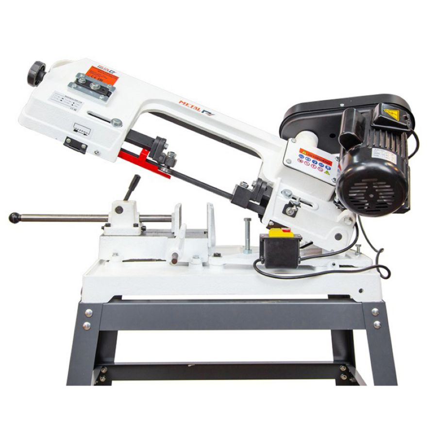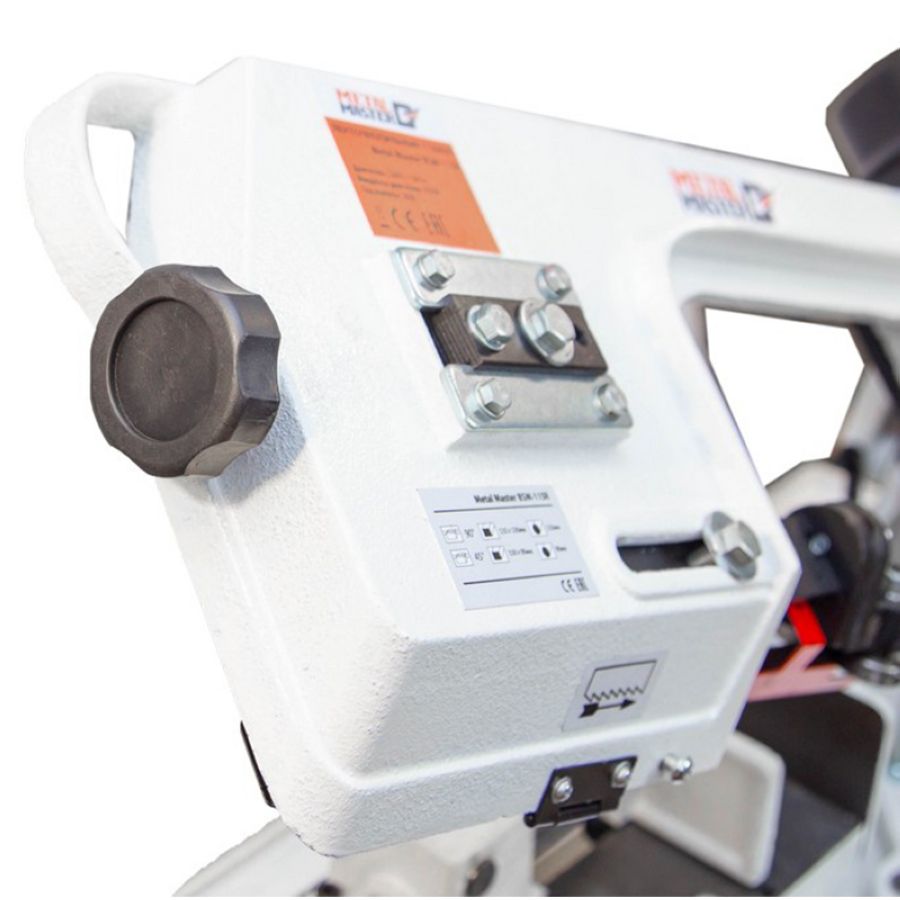 Ленточная пила по металлу MetalMaster BSM-115R –подходит для мелкосерийного производства на вспомогательных участках, в небольших мастерских, а также для бытового использования. Станок с ленточной пилой по металлу используют для резки заготовок из алюминия, цветных металлов, стали, легированной стали, сплавов, а также пластмасс. Ленточная пила по металлу отличается высокой производительностью. Корпус станка изготовлен из литого чугуна. Заготовка фиксируется в регулируемых быстрозажимных тисках. Скорость ножовочного полотна регулируется. Поворотная рама позволяет осуществлять пил заготовок под углом до 45 градусов. Ручная ленточная пила обладает высокой функциональностью, и отличной устойчивостью при вибрации, что обеспечивает точность распила согласно инструкции. Помимо компактных размеров и удобства управления, основными преимуществами станка являются хорошая производительность, экономичность и хорошие рабочие характеристики. Важно будет подчеркнуть, что по характеристикам, указанным в паспорте по эксплуатации этого типа станка, его следует использовать строго с промежутками в работе, так как это необходимо для охлаждения электродвигателя. Таким образом, необходимо организовать рабочий режим с интервалами в 30 минут. Выключить оборудование на некоторое время для подготовки к новому циклу работы. Производитель станка гарантирует его бесперебойную работу в течении 12 месяцев с момента покупки.