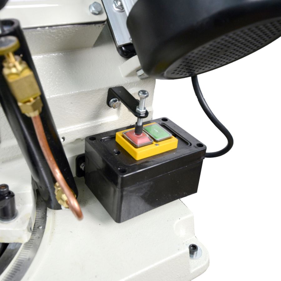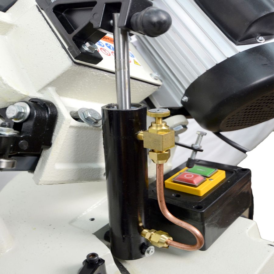 Metal Master BSM-128DIY – это ленточнопильный станок с гидроразгрузкой. Данный агрегат, как правило используется на небольших производствах или домашних условиях для распила заготовок из черных, цветных металлов, и различных материалов с однородным, полым и профильным сечением. Малогабаритные размеры станка позволяют производить обработку заготовок профилей, только малого сечения, так как тут нет в комплекте СОЖ. Конструктивная особенность оборудования заключается в том, что, станок оснащен функцией быстрого поворота пильной рамы под углами 90, 45 и 60 градусов, что позволяет значительно расширяет ваши возможности в создании разнообразных изделий. Установленная гидравлическая система обеспечит работающему персоналу полностью автоматическое включение, опускание рамы и остановку пилы. В модельной линейке BSM DIY на всех ленточных пилах есть механические тисками для точной фиксации детали. Рифленая поверхность губок тисков исключает скольжение заготовки в процессе резки. Производитель дает гарантию на работу станка в 1 год. По желанию покупателя можно оформить постгарантийное обслуживание агрегата.