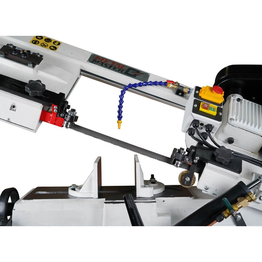 Ленточная пила Metal Master BSM-712K B20 220V – создана в конструкторском решении как ленточнопильный станок, который предназначена для практичного и быстрого распила различных изделий из чёрных и цветных металлов, а также из разнообразных сплавов и прочих материалов исполненых по типу целиковым, полым и профильным сечением. Рабочий стол и пильная рама отлиты из чугуна, что обеспечивает необходимую жесткость конструкции. Пильная рама поднимается вручную, а опускается за счет гидроразгрузки.