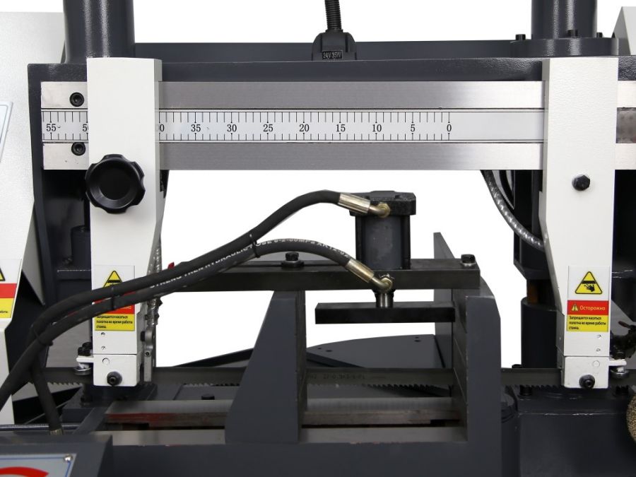 Применение рассматриваемой техники позволяет выполнять нарезание металлических заготовок из прутков и труб, например, чтобы выполнить последующую токарную обработку данных заготовок. В качестве режущего инструмента выступает ленточнопильное полотно, которое замкнуто в кольцо, и надето на специальные шкивы. Рабочая оснастка (ленточнопильное полотно) вращается со значительной скоростью позволяет совершать распил заготовок, созданных из высокопрочных материалов. Для того чтобы инструмент не вышел из строя раньше времени предусмотрена система СОЖ, которая позволяет своевременно охлаждать его, не давая перегреваться.