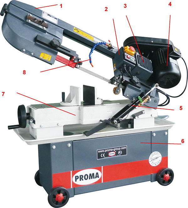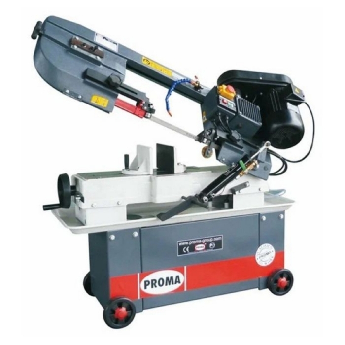 PROMA PPK-175 - ленточная пила по металлу небольшого размера. Ленточно-пильные станки по металлу используются для резки заготовок из алюминия, цветных металлов, стали, легированной стали, сплавов, а также пластмасс. Ленточная пила по металлу отличается высокой производительностью. Питание станка трехфазное – 380 В. Корпус станка изготовлен из литого чугуна. Заготовка фиксируется в регулируемых быстрозажимных тисках под нужным углом. Станок оборудован гидравлическим приводом для плавного опускания пильного узла. Скорость ножовочного полотна регулируется – 4 режима. Привод пильной ленты ременной. Удобный натяжитель ленточного полотна. Станок оборудован узлом охлаждения полотна. Станок комплектуется большим основанием-тумбой, оборудованной колесами